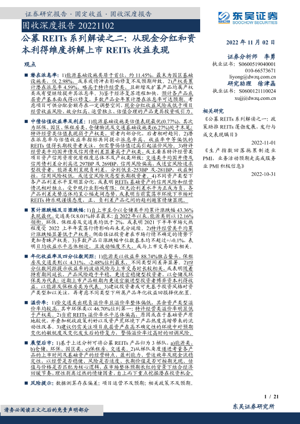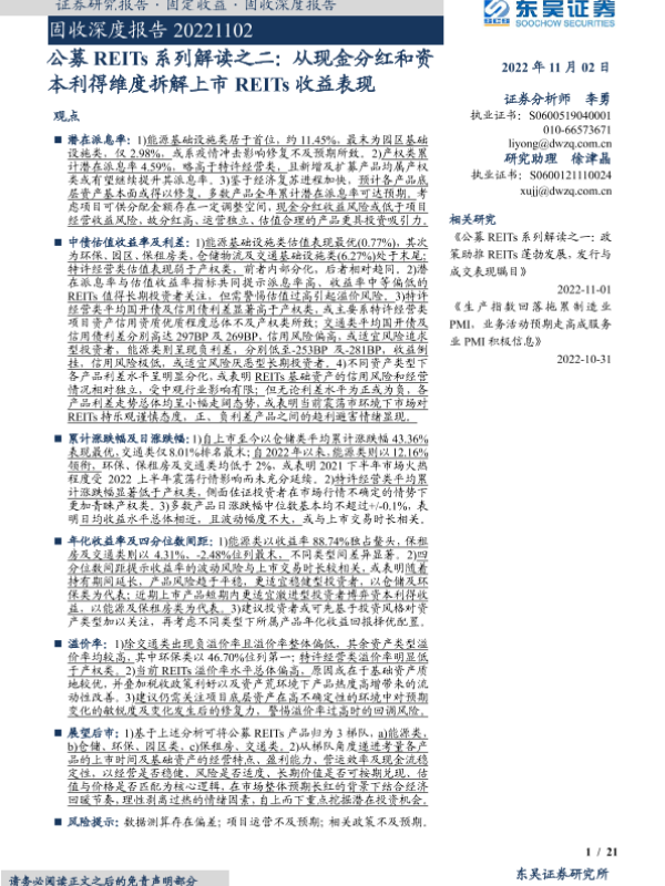 【东吴证券】【20221102】公募REITs系列解读之二:从现金分红和资本利得维度拆解上市REITs收益表现-21页