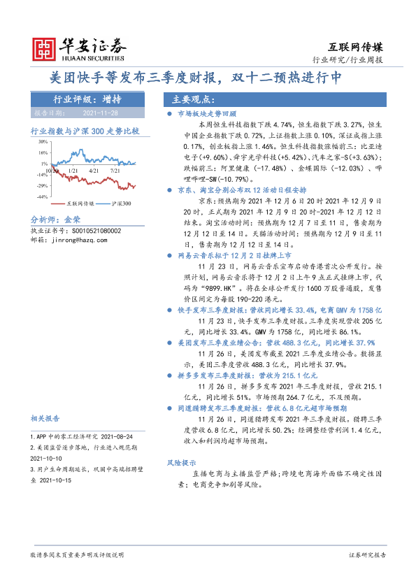 【华安证券】【20211128】20211128-华安证券-互联网传媒行业周报:美团快手等发布三季度财报,双十二预热进行中-18页