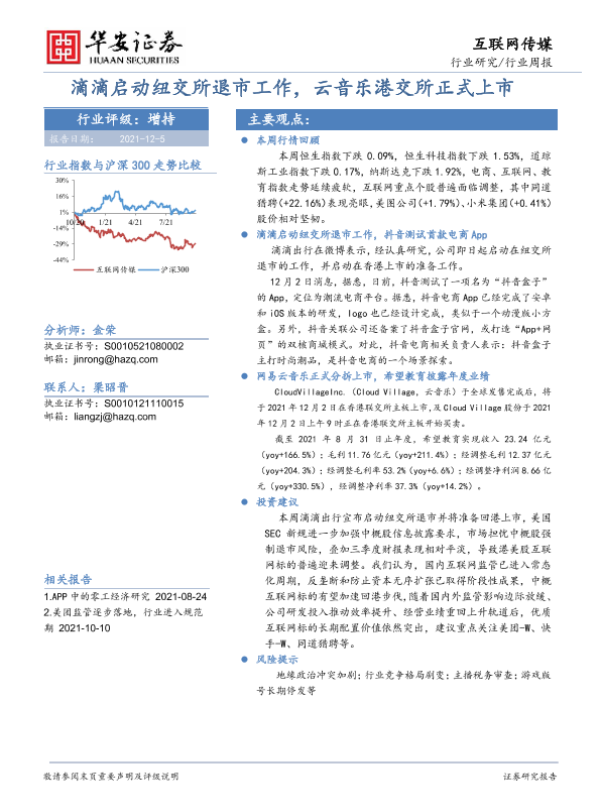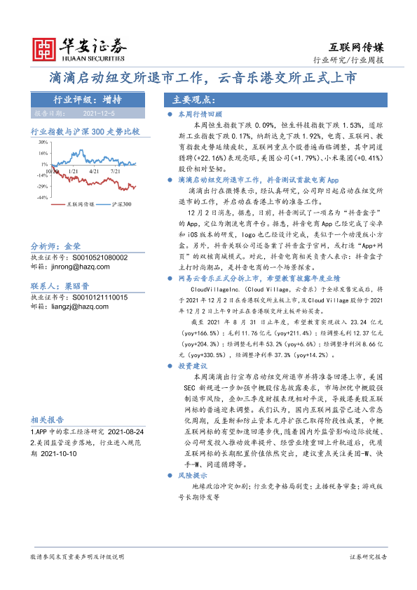 【华安证券】【20211205】20211205-华安证券-互联网传媒行业周报:滴滴启动纽交所退市工作,云音乐港交所正式上市-18页