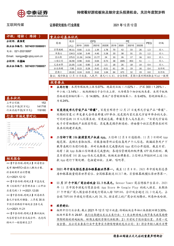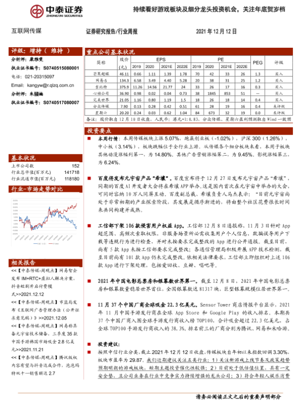 【中泰证券】【20211212】20211212-中泰证券-互联网传媒行业周报:持续看好游戏板块及细分龙头投资机会,关注年底贺岁档-12页
