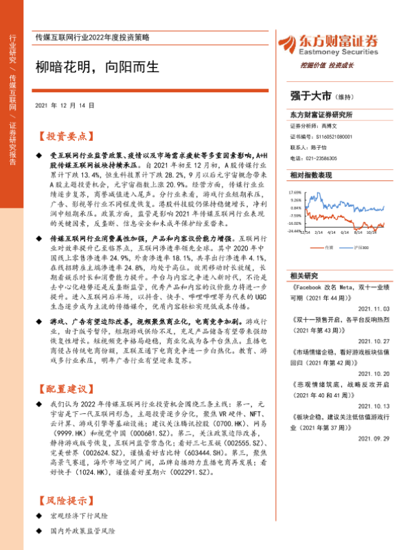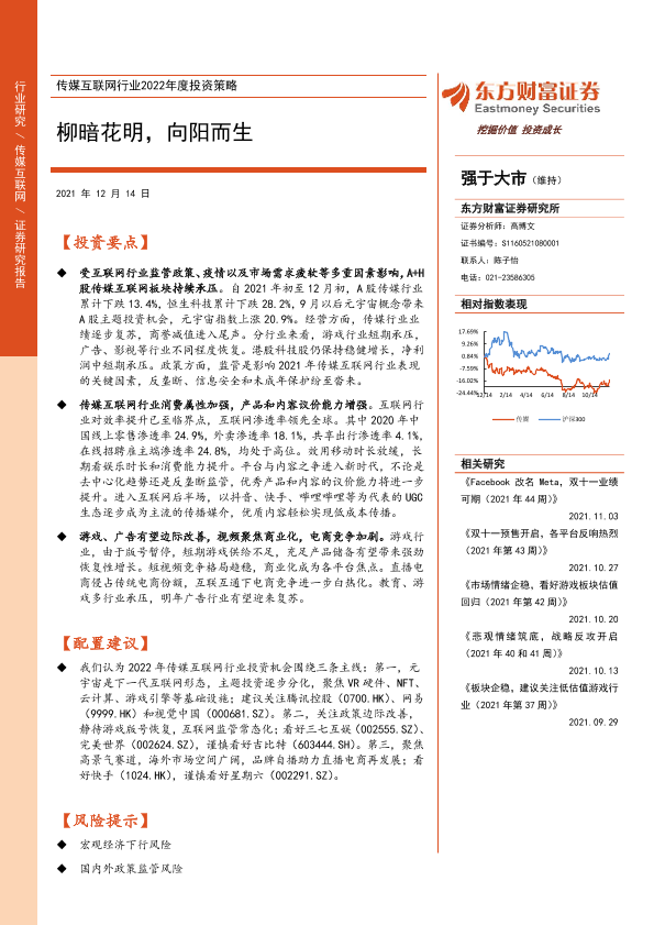 【东方财富证券】【20211214】传媒互联网行业2022年度投资策略:柳暗花明,向阳而生-36页