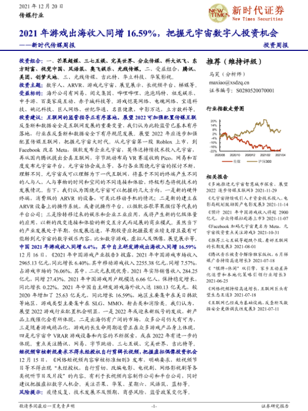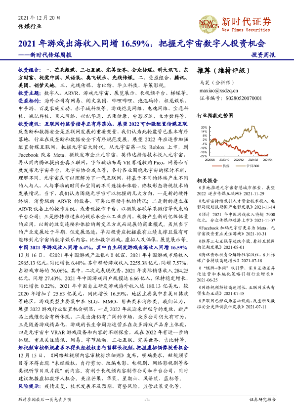 【新时代证券】【20211220】2021年游戏出海收入同增16.59%,把握元宇宙数字人投资机会-31页