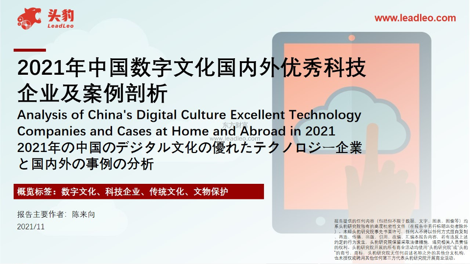 【头豹研究院】【2021】2021年中国数字文化国内外优秀科技企业及案例剖析-29页