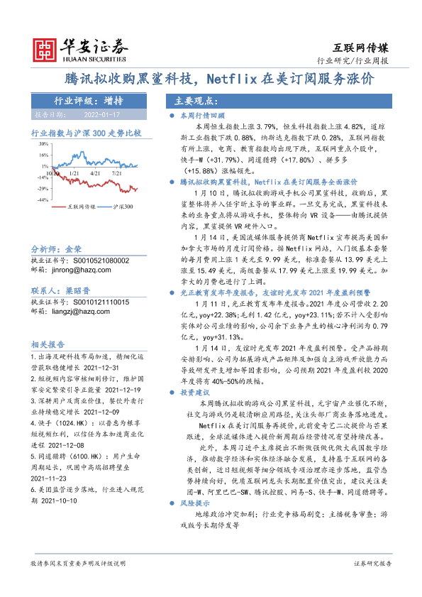 【华安证券】【20220117】20220117-华安证券-互联网传媒行业周报:腾讯拟收购黑鲨科技,Netflix在美订阅服务涨价-19页