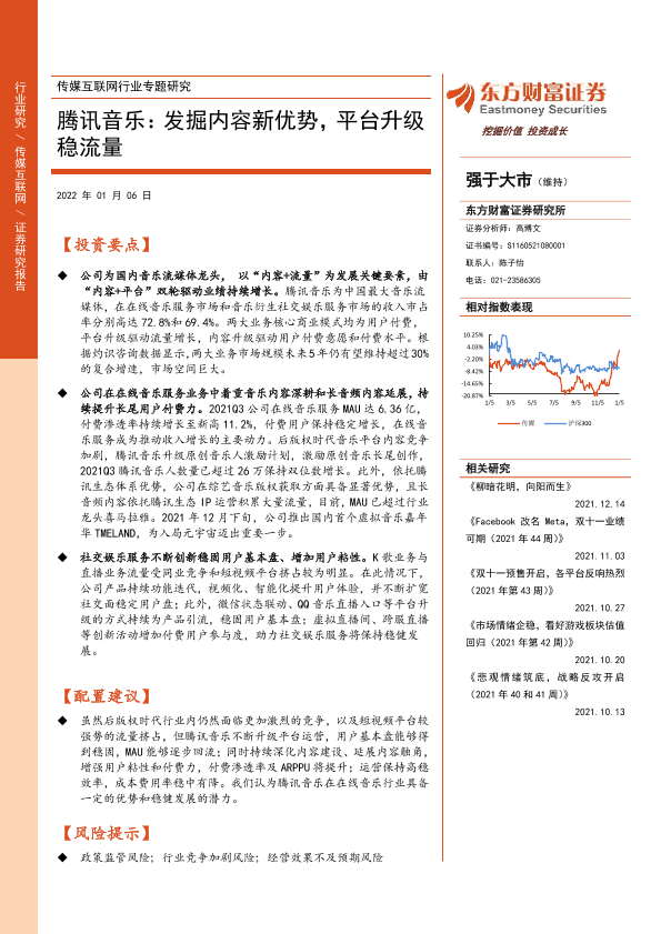 【东方财富证券】【20220106】传媒互联网行业专题研究:腾讯音乐:发掘内容新优势,平台升级稳流量-33页