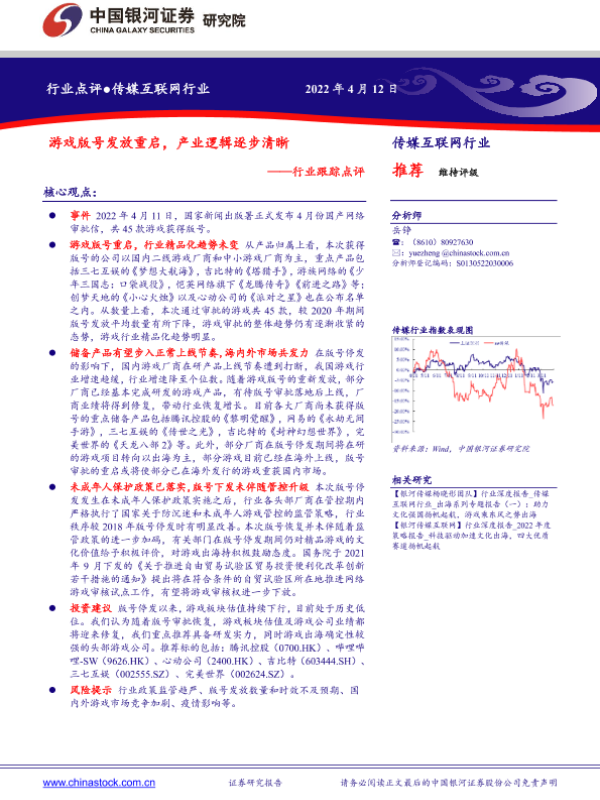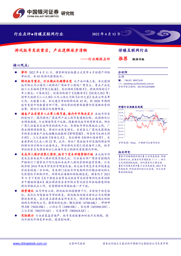 【银河证券】【20220412】20220412-中国银河-传媒互联网行业跟踪点评:游戏版号发放重启,产业逻辑逐步清晰-5页