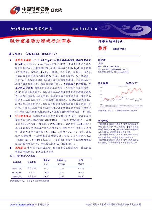 【银河证券】【20220417】传媒互联网行业周报:版号重启助力游戏行业回春-38页