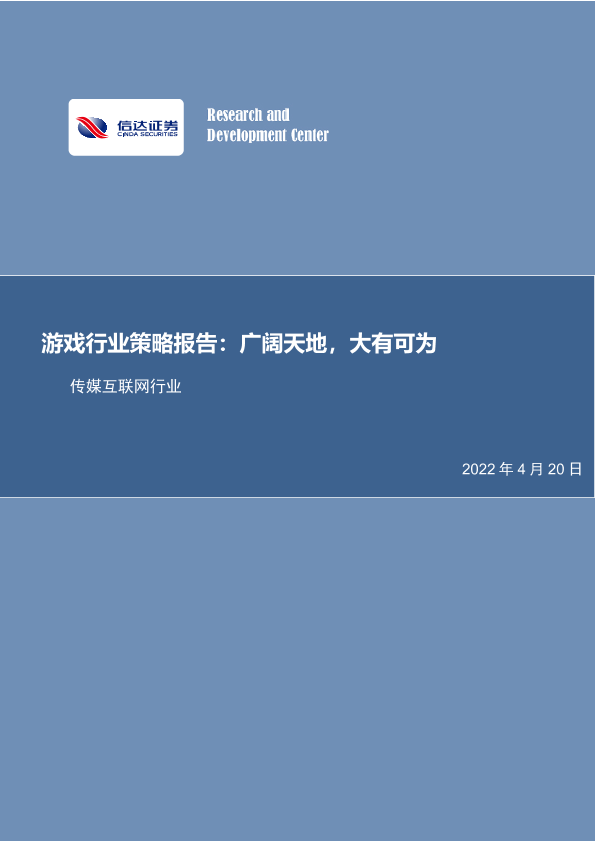 【信达证券】【20220420】游戏行业策略报告:广阔天地,大有可为-50页