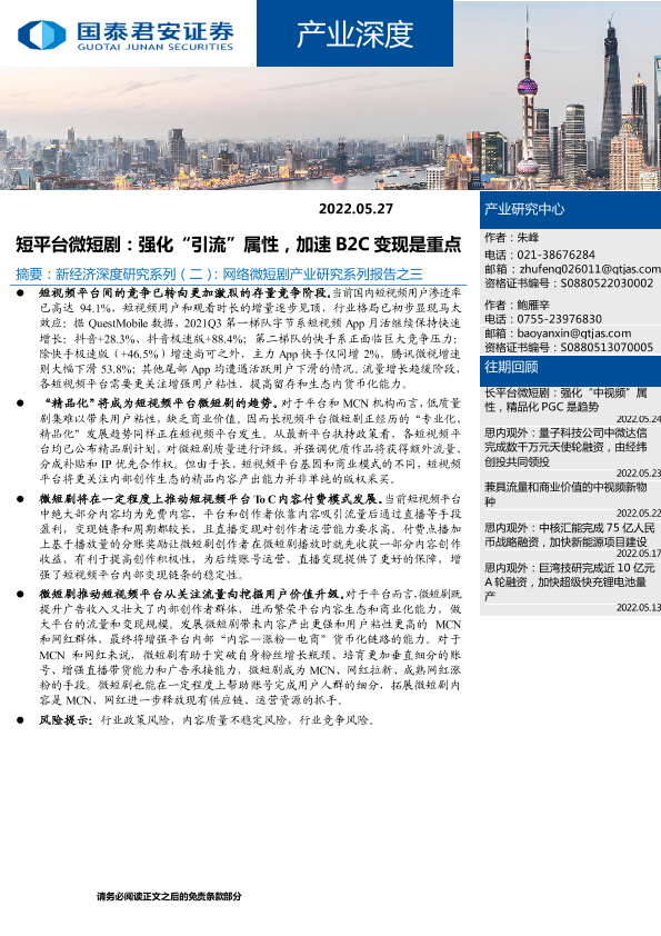 【国泰君安证券】【20220527】短平台微短剧:强化“引流”属性,加速B2C变现是重点-11页