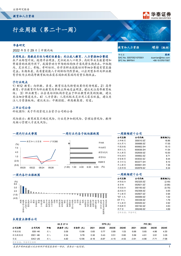 【华泰证券】【20220529】教育和人力资源行业周报(第二十一周)-15页