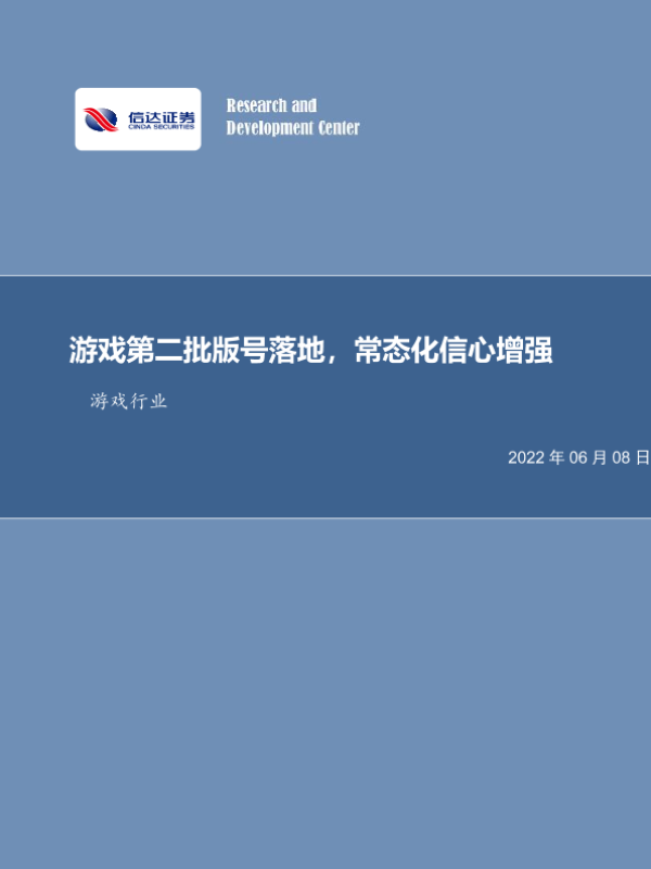 【信达证券】【20220608】游戏行业点评:游戏第二批版号落地,常态化信心增强-8页