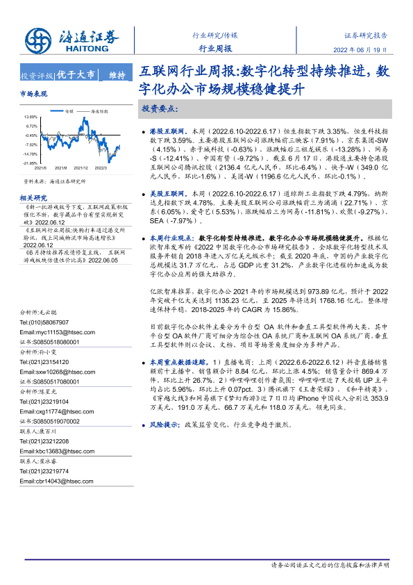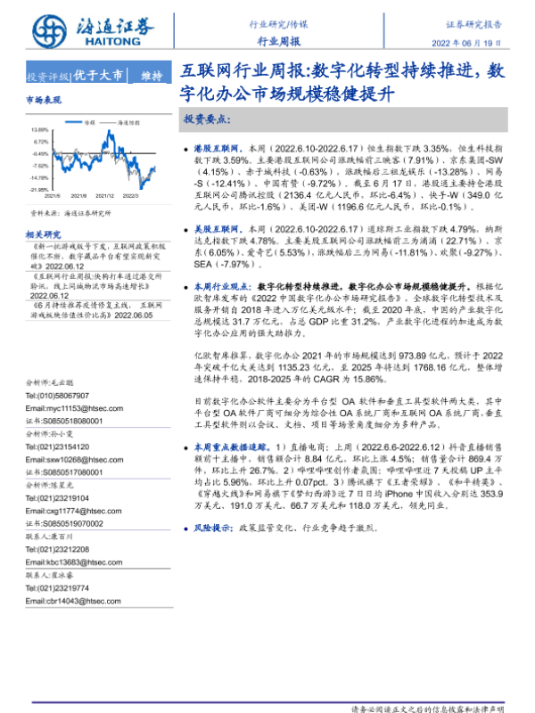 【海通证券】【20220619】20220619-海通证券-互联网行业周报:数字化转型持续推进,数字化办公市场规模稳健提升-9页