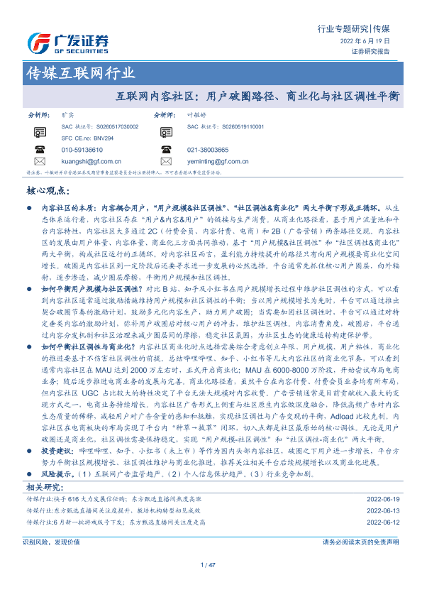 【广发证券】【20220619】互联网内容社区:用户破圈路径、商业化与社区调性平衡-47页