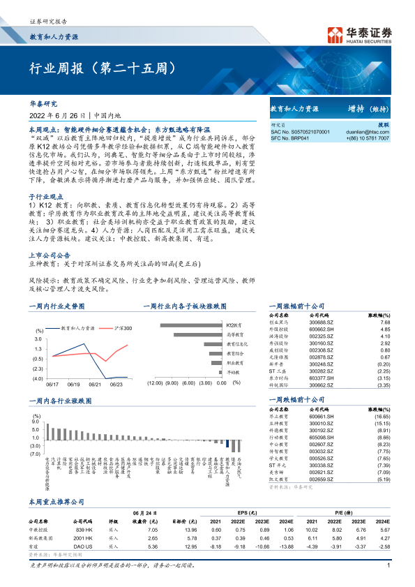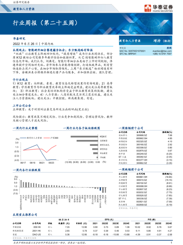 【华泰证券】【20220626】20220626-华泰证券-教育和人力资源行业周报(第二十五周)-17页