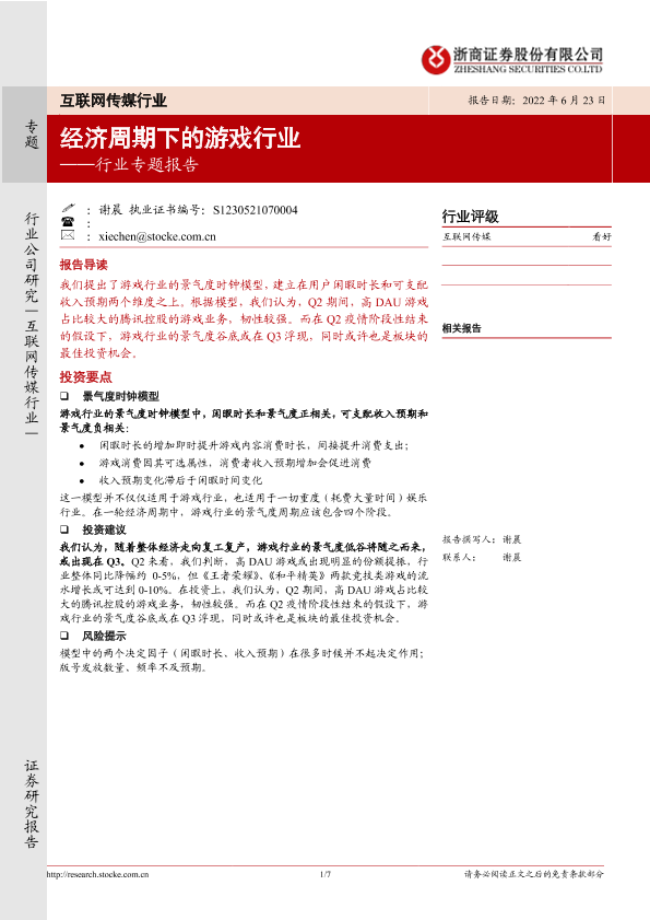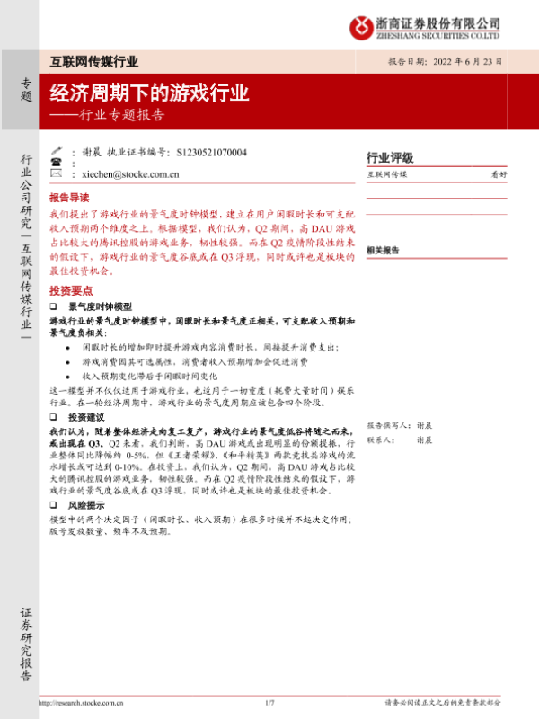 【浙商证券】【20220623】互联网传媒行业专题:经济周期下的游戏行业-7页