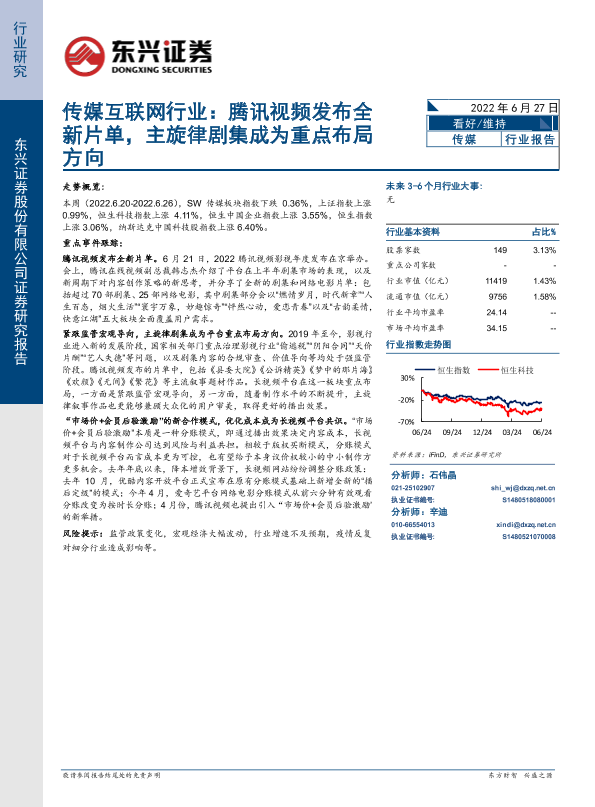 【东兴证券】【20220627】传媒互联网行业:腾讯视频发布全新片单,主旋律剧集成为重点布局方向-11页