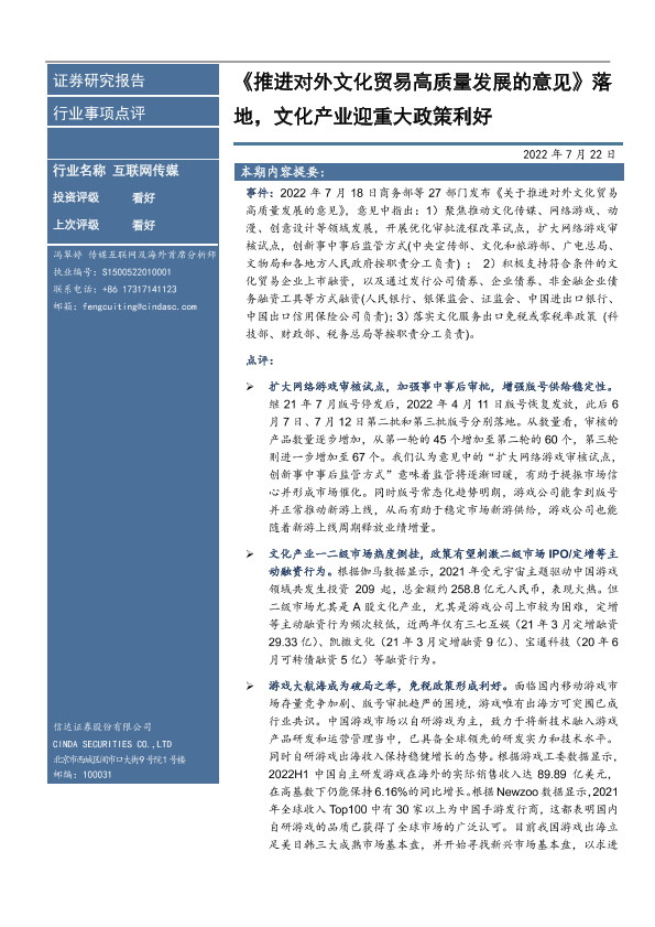 【信达证券】【20220722】《推进对外文化贸易高质量发展的意见》落地,文化产业迎重大政策利好-9页