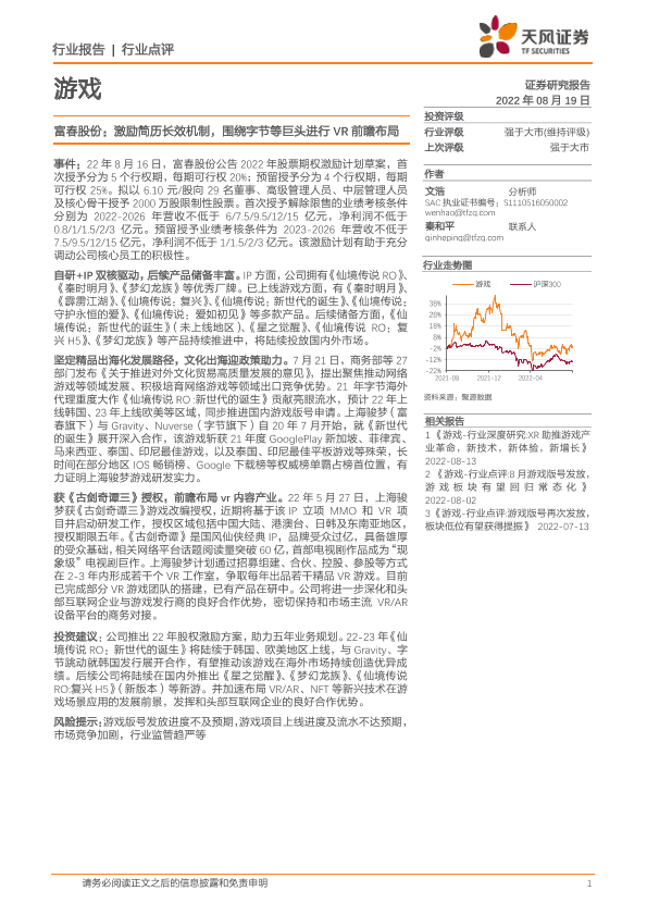【天风证券】【20220819】富春股份:激励简历长效机制,围绕字节等巨头进行VR前瞻布局-2页