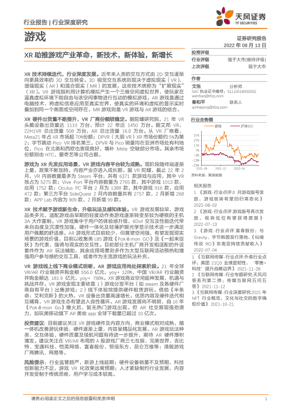 【天风证券】【20220815】XR助推游戏产业革命,新技术,新体验,新增长-51页