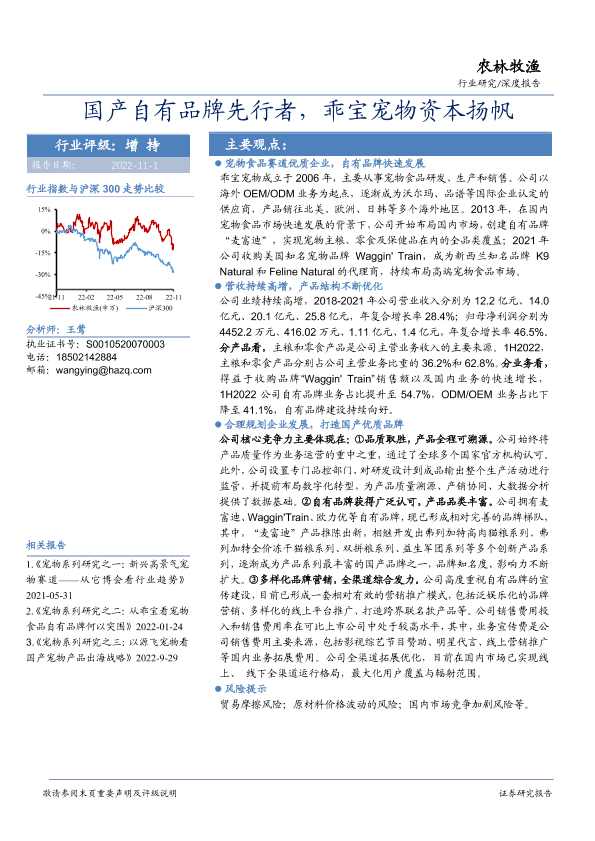 【华安证券】【20221101】农林牧渔行业:国产自有品牌先行者,乖宝宠物资本扬帆-35页