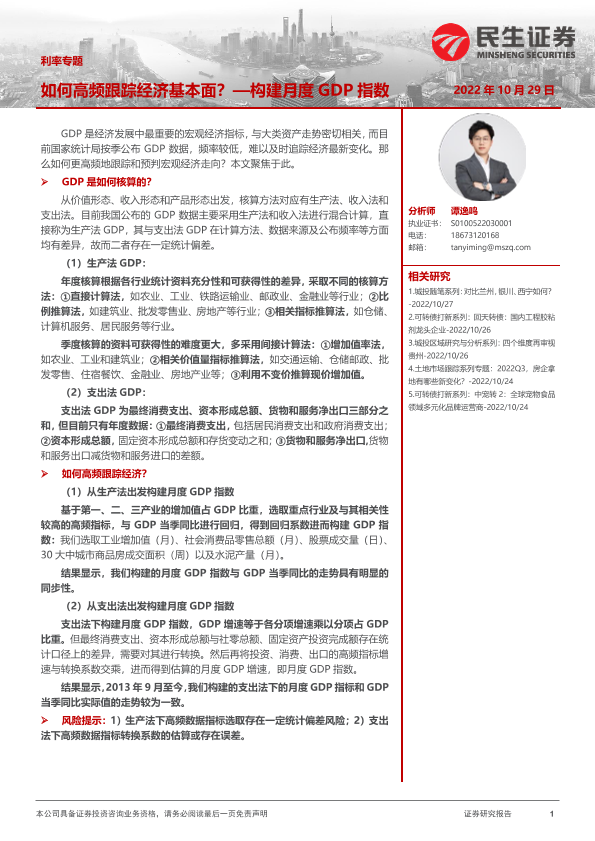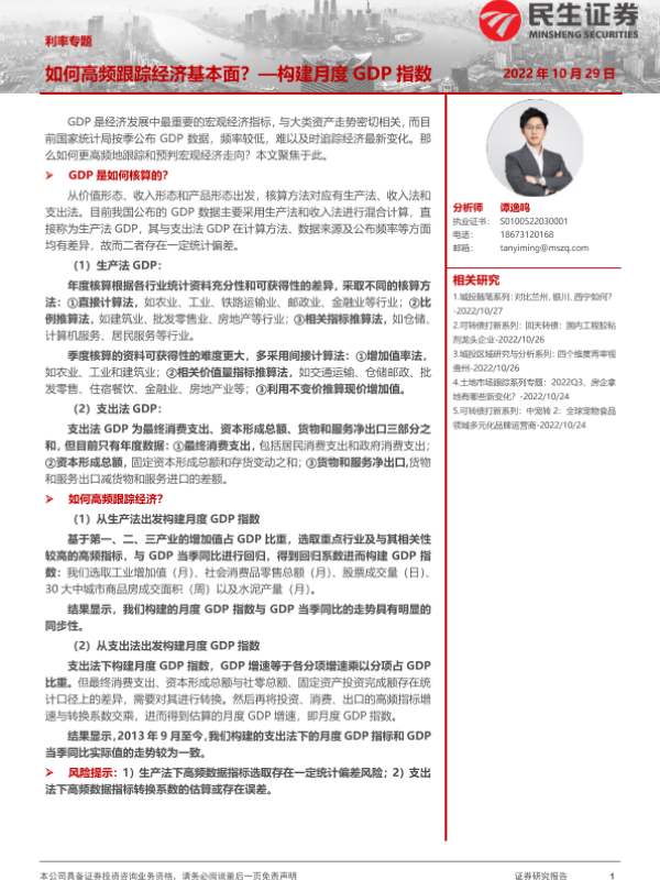 【民生证券】【20221029】利率专题:如何高频跟踪经济基本面?构建月度GDP指数-15页
