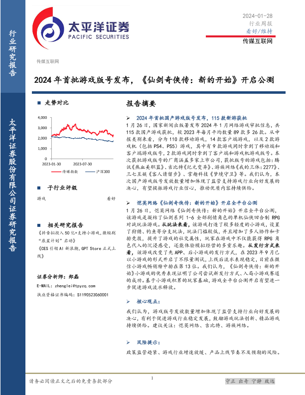 【太平洋证券】【20240128】2024年首批游戏版号发布,《仙剑奇侠传:新的开始》开启公测-25页