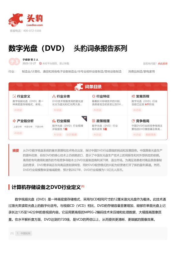 【头豹研究院】【20240130】数字光盘(DVD) 头豹词条报告系列-19页