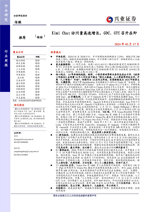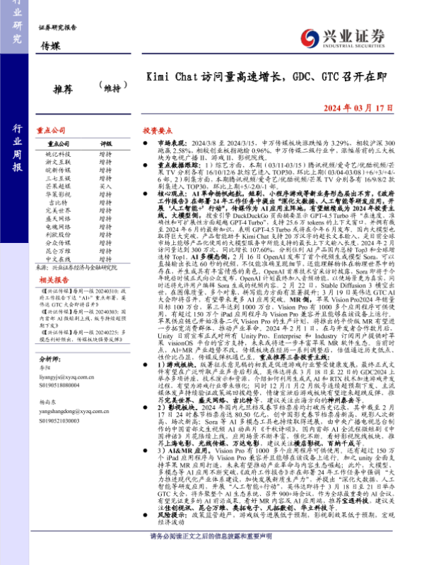 【兴业证券】【20240317】20240317-兴业证券-传媒行业周报:Kimi Chat访问量高速增长,GDC、GTC召开在即-21页
