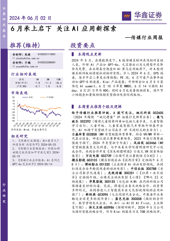 【华鑫证券】【20240602】20240602-华鑫证券-传媒行业周报:6月承上启下 关注AI应用新探索-20页