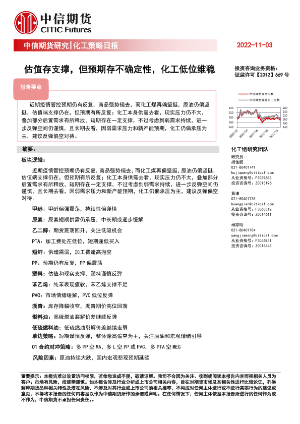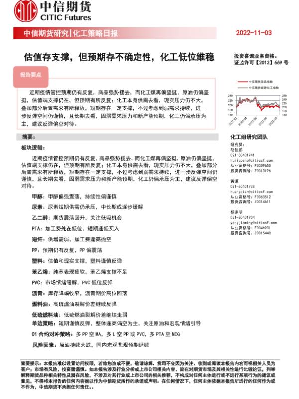 【中信期货】【20221103】化工策略日报:估值存支撑,但预期存不确定性,化工低位维稳-20页