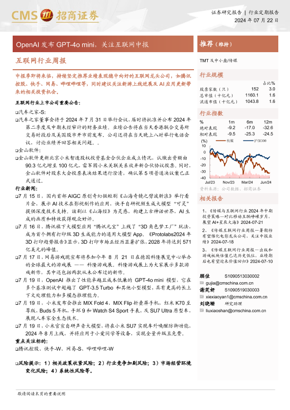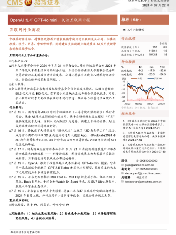 【海通证券】【20240722】20240722-招商证券-互联网行业周报:OpenAI发布GPT-4omini,关注互联网中报-10页