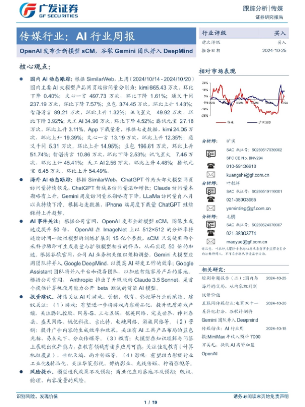 【广发证券】【20241025】传媒行业:AI行业周报,OpenAI发布全新模型sCM,谷歌Gemini团队并入DeepMind-19页