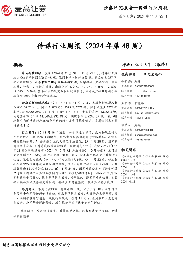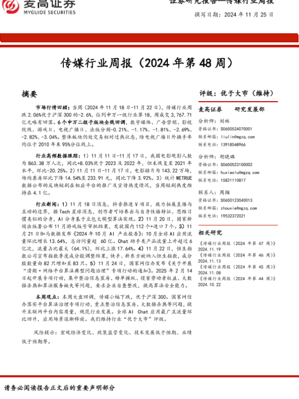 【麦高证券】【20241125】传媒行业周报(2024年第48周)-10页