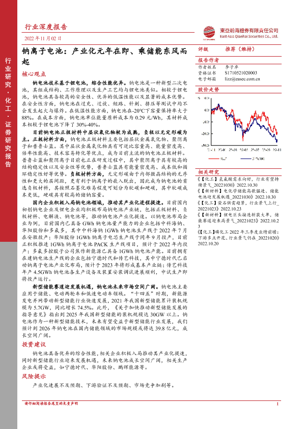 【东亚前海证券】【20221102】化工行业:钠离子电池,产业化元年在即、乘储能东风而起-42页