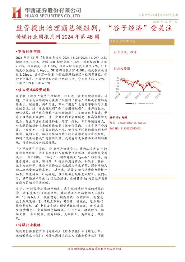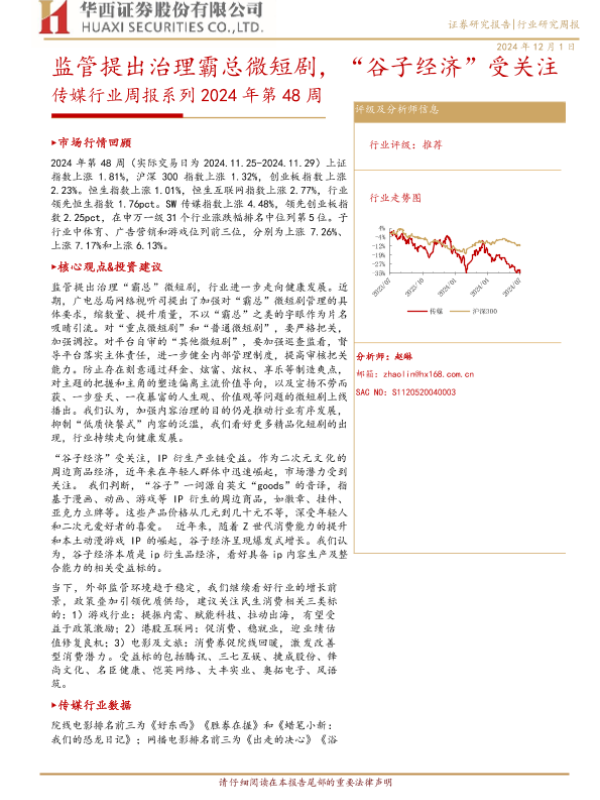 【华西证券】【20241201】2024年第48周传媒行业周报:监管提出治理霸总微短剧,“谷子经济”受关注-23页