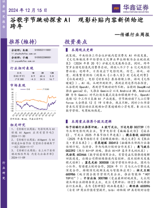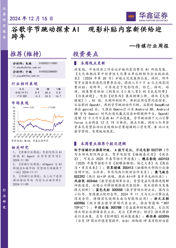 【华鑫证券】【20241215】20241215-华鑫证券-传媒行业周报:观影补贴内容新供给迎-21页