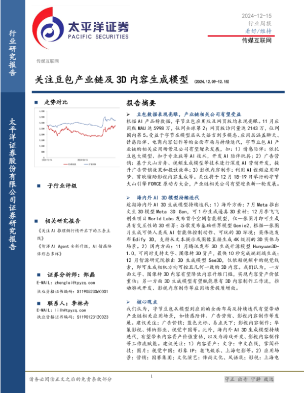 【太平洋证券】【20241215】传媒互联网行业周报:关注豆包产业链及3D内容生成模型-21页