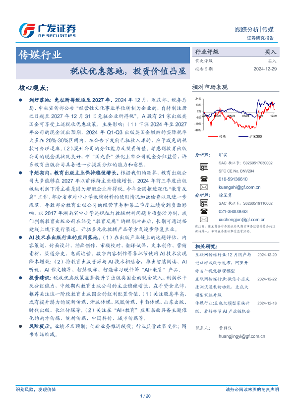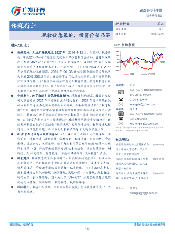 【广发证券】【20241229】传媒行业:税收优惠落地,投资价值凸显-20页