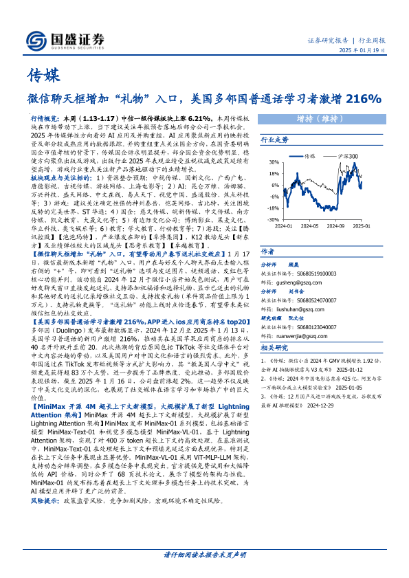 【国盛证券】【20250119】国盛证券-传媒行业周报:微信聊天框增加“礼物”入口,美国多邻国普通话学习者激增216%-10页