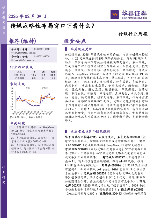 【华鑫证券】【20250209】传媒战略性布局窗口下看什么?-20页