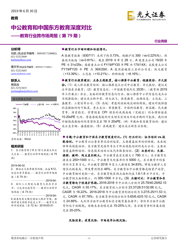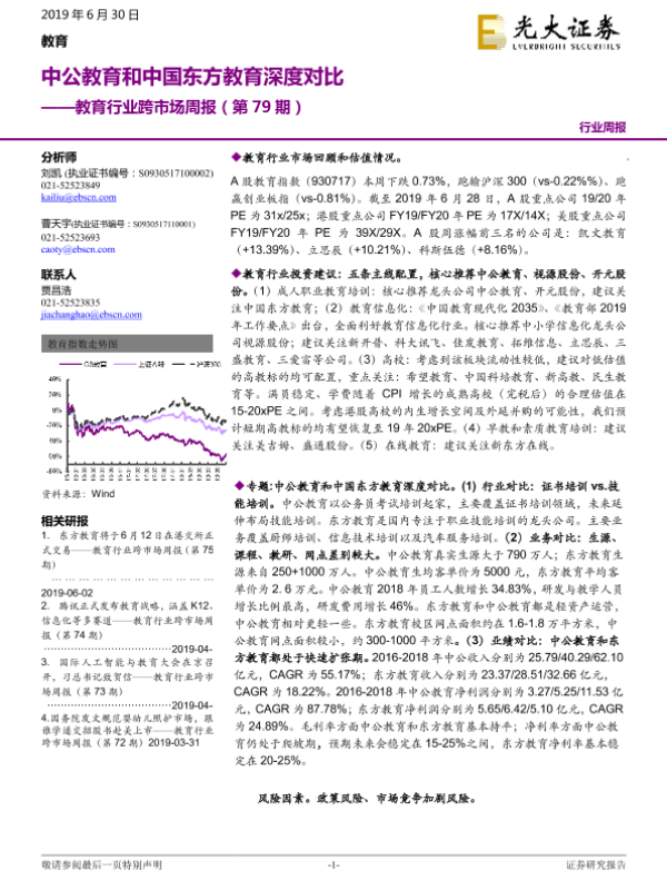【光大证券】【20190630】20190630-光大证券-教育行业跨市场周报(第79期):中公教育和中国东方教育深度对比-21页