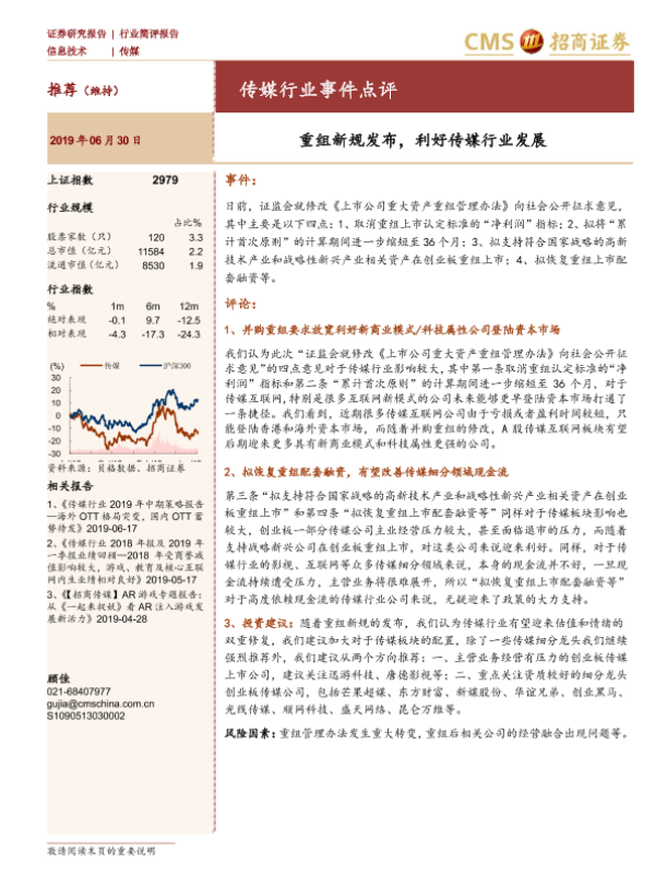 【海通证券】【20190630】传媒行业事件点评:重组新规发布,利好传媒行业发展-2页
