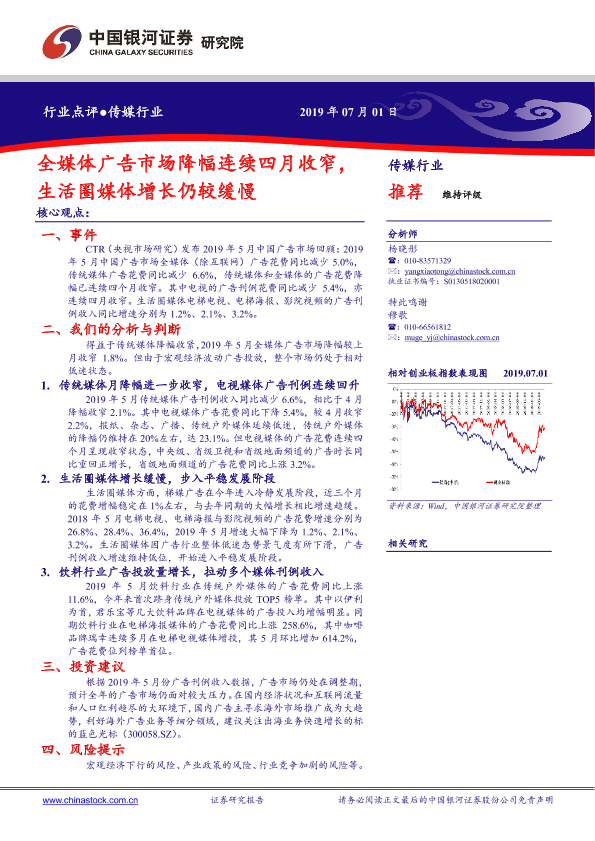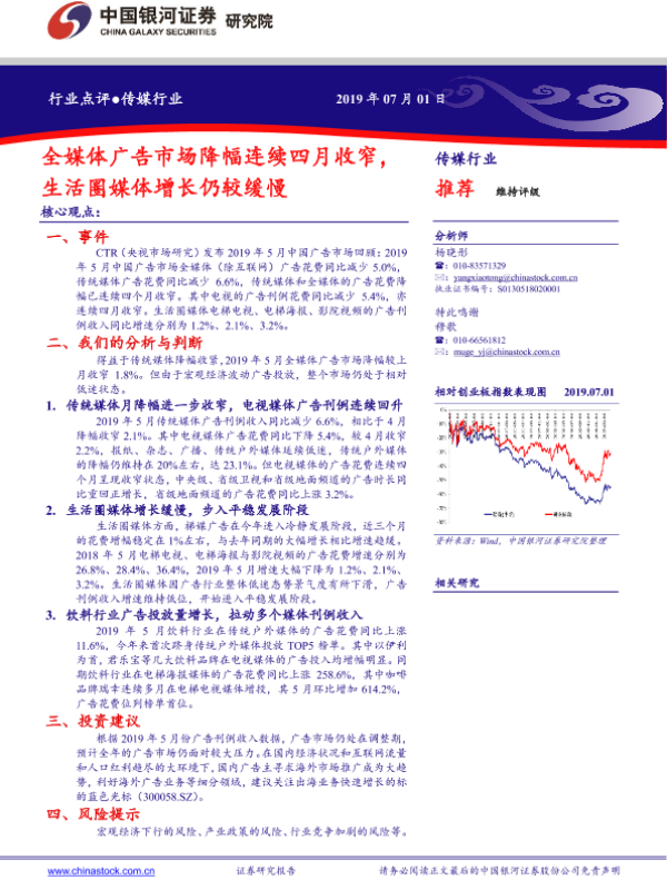 【银河证券】【20190701】20190701-中国银河-传媒行业:全媒体广告市场降幅连续四月收窄,生活圈媒体增长仍较缓慢-3页