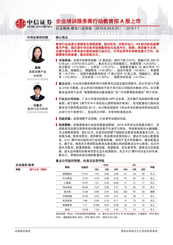 【中信证券】【20190701】教育行业周报:企业培训服务商行动教育拟A股上市-13页