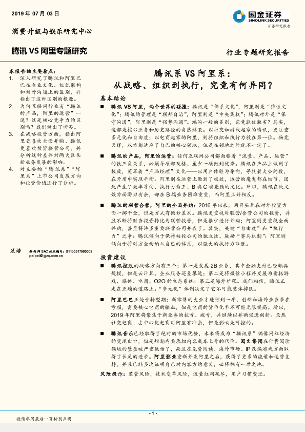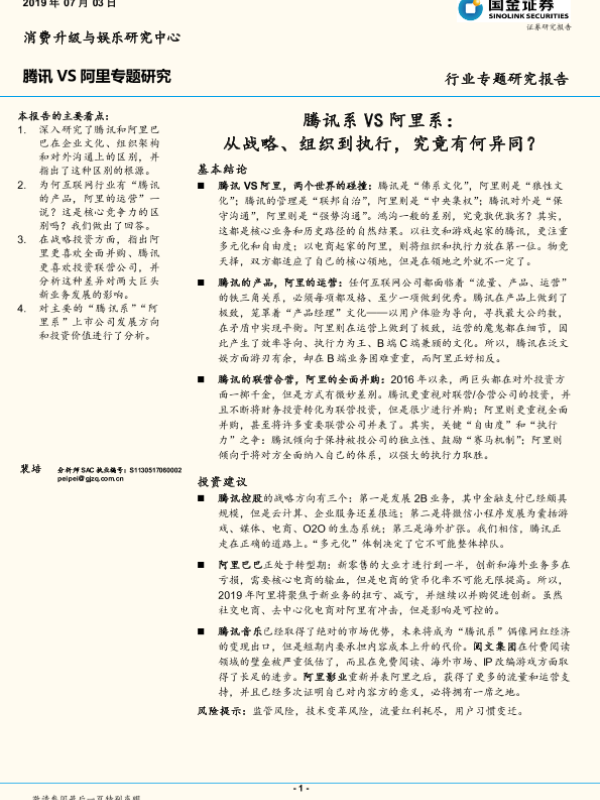 【国金证券】【20190703】腾讯VS阿里系:从战略、组织到执行,究竟有何异同?-32页