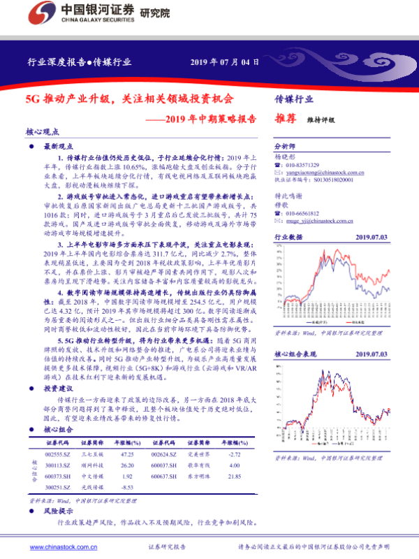 5G技术 产业升级 传媒行业 投资机会 数字阅读