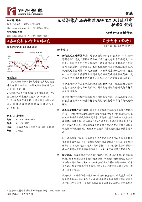 【中原证券】【20190705】传媒行业专题研究:互动影像产品的价值在哪里?从《隐形守护者》说起-13页