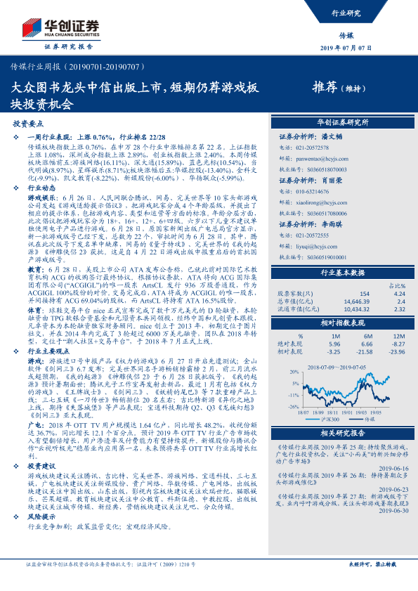 【华创证券】【20190707】20190707-华创证券-传媒行业周报:大众图书龙头中信出版上市,短期仍荐游戏板块投资机会-14页