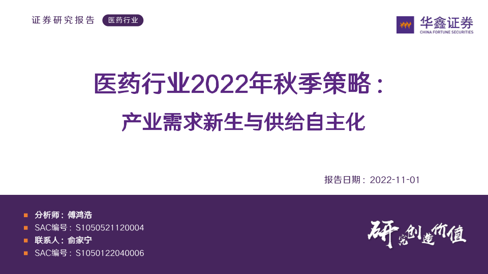 【华鑫证券】【20221101】医药行业2022年秋季策略:产业需求新生与供给自主化-55页