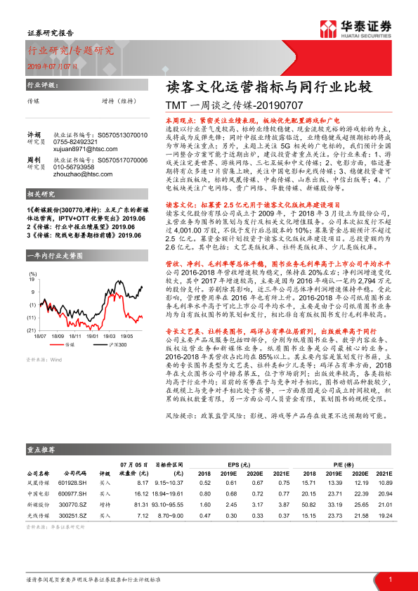 【华泰证券】【20190707】TMT一周谈之传媒:读客文化运营指标与同行业比较-15页